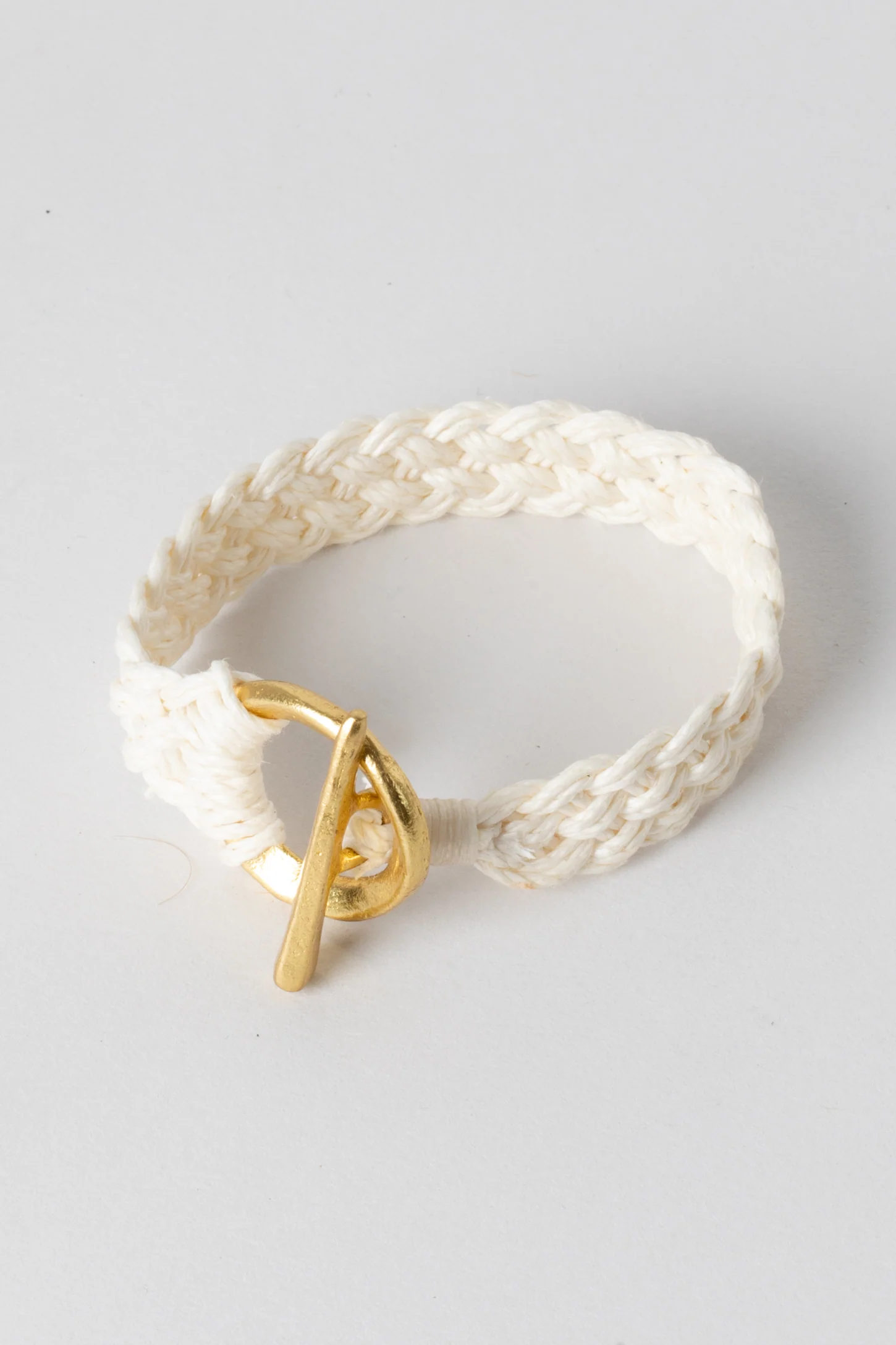 Step up your nautical style with this Latch and Lock Woven Bracelet. Features a classic sailor weave and Greek-style gold color clasp. Affordable, yet totally seaworthy style.