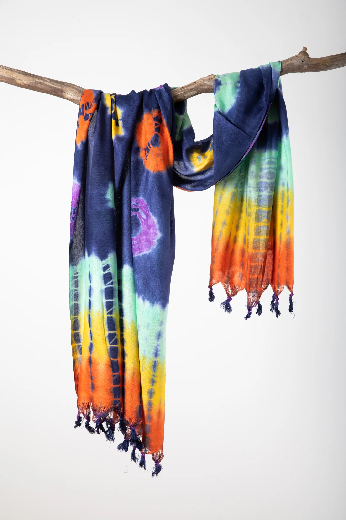 The colorful tie dye patterns bring playful energy and artistic texture to any outfit. Pair it with swimwear for a relaxed beach look, style it with sandals and flowy dresses for effortless bohemian layering, or incorporate it into your favorite hippie clothing for a vibrant splash of color. Subtle tassels at the edges add movement and a relaxed, handcrafted finish.