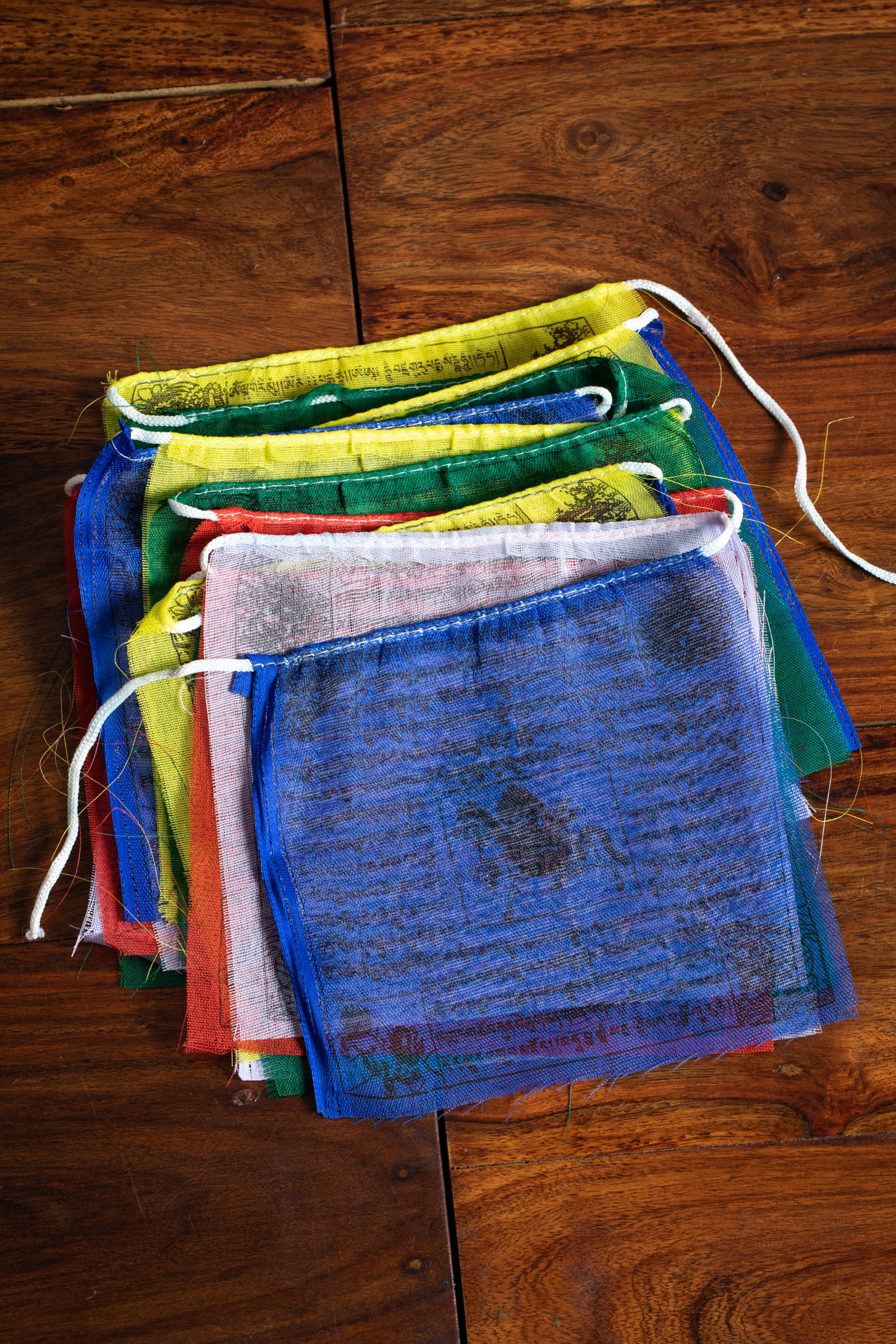 Available in an assortment of different sizes to bring good vibrations to all kinds of spaces, our prayer flags can be hung indoors or outside, brightening any space with color, good vibes, and positive energy.